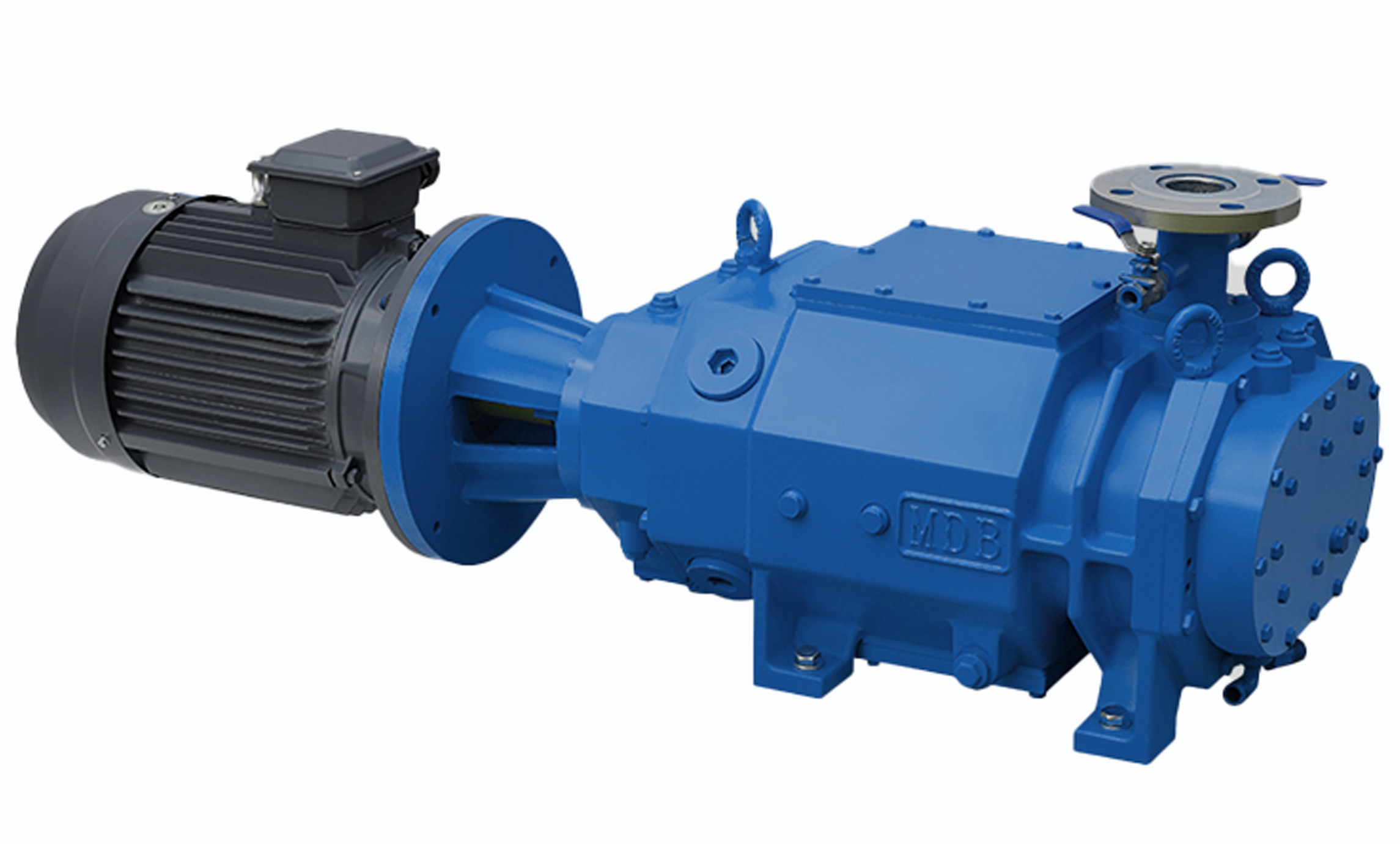 螺桿真空泵的一個(gè)導(dǎo)程相當(dāng)于一級(jí)泵,多個(gè)導(dǎo)程的螺桿真空泵相當(dāng)于多級(jí)泵串聯(lián),相對(duì)于爪式真空泵、多級(jí)羅茨真空泵等多級(jí)串聯(lián)的干式真空泵而言,因螺桿真空泵的各級(jí)泵之間無(wú)內(nèi)部通道,而是直接將氣體從吸氣側(cè)推送至排氣側(cè),因此在抽除可凝性氣體、帶有粉塵及顆粒物的氣體時(shí)不易堵塞且清洗方便。
